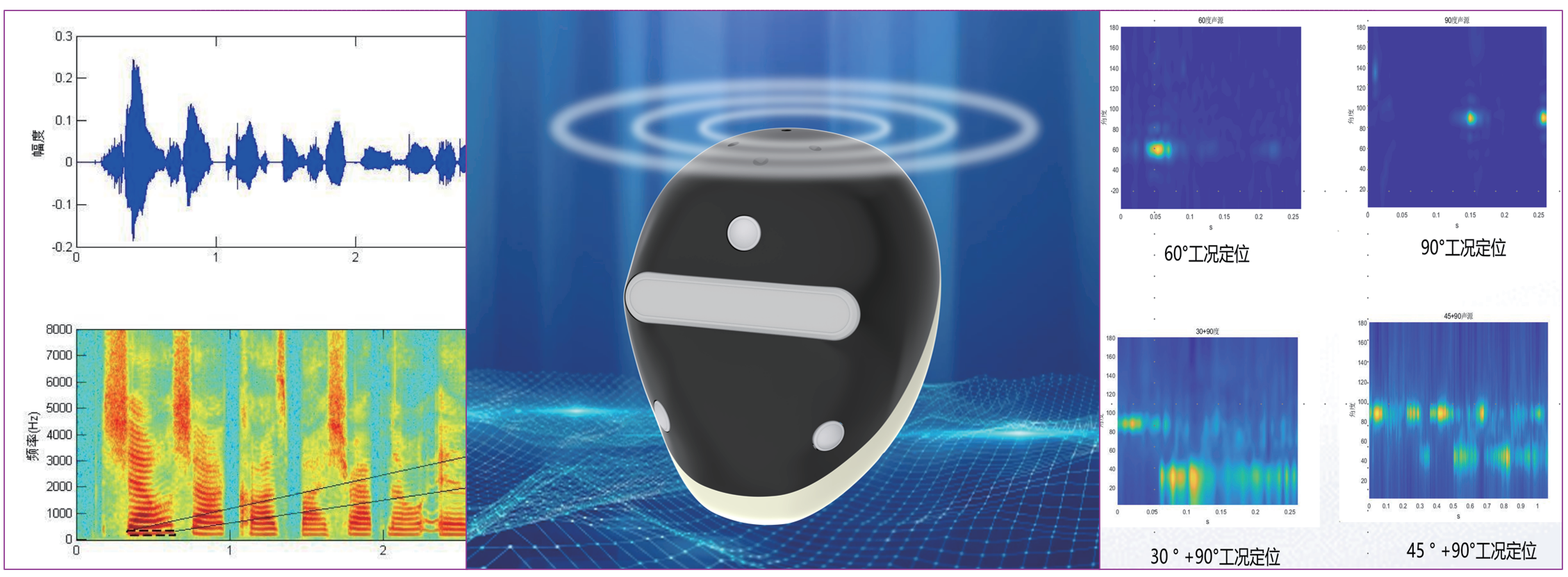基于麦克风阵列在环境不同位置点对声信号进行测量,利用算法对测量到的声信号进行处理,由此获得声源点相对于麦克风的到 达方向(包括方位角、俯仰角)和距离等。同时,采用基于波数域的波束形成方法,将空间域的导数计算转化为波数域内的乘法运算, 生成与频率无关的波束形成器,降低了计算复杂度,有效抑制了非目标方向的噪声和干扰,在复杂声场环境中准确识别目标声源。