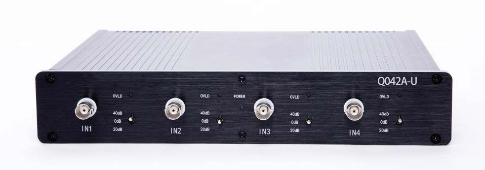 Q042A-U数据采集仪作为4进2出的 IEPE信号调理和数据采集集成设备,为传感器器提供标准4 mA恒流源供电。具有本底噪声低、相位一致、稳定性好和可靠性高等特点。前面板设置0dB、20dB、40dB增益档位,满足测试的常规要求。